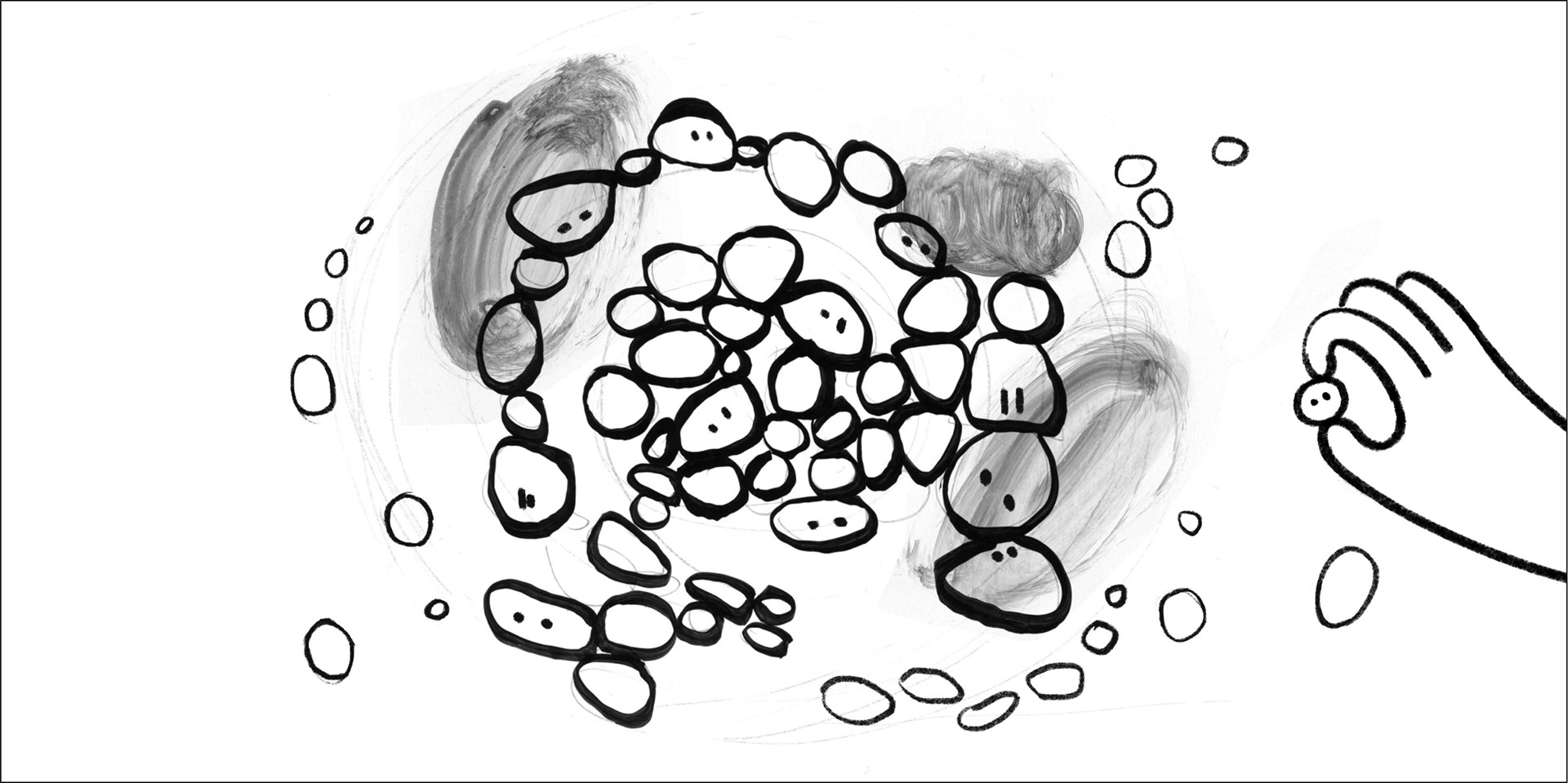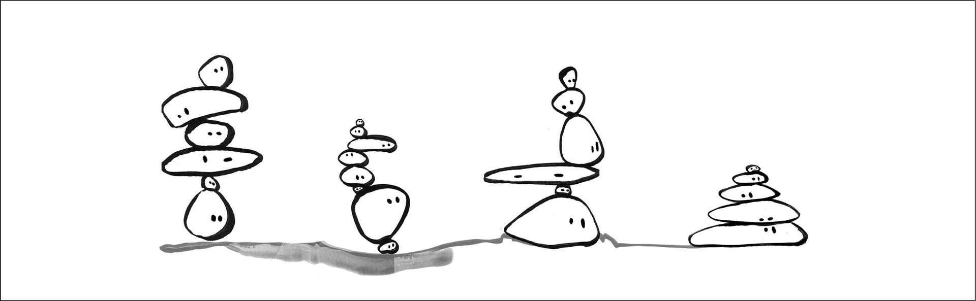 The Green Design Principles are divided into two categories: Think Bigger Before You Start and Build Better By Default. I illustrated the themes within each category using characters. Organic, tree-like shape to signal complexity and more solid, pebble forms that combine to create new structures.